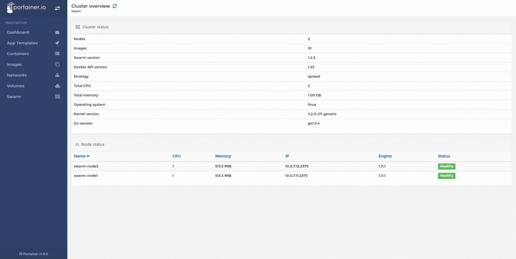 On peut donc voir l’utilisation disque des docks, les images disponibles, les docks arrêter/démarrer et faire des filtres dessus.
